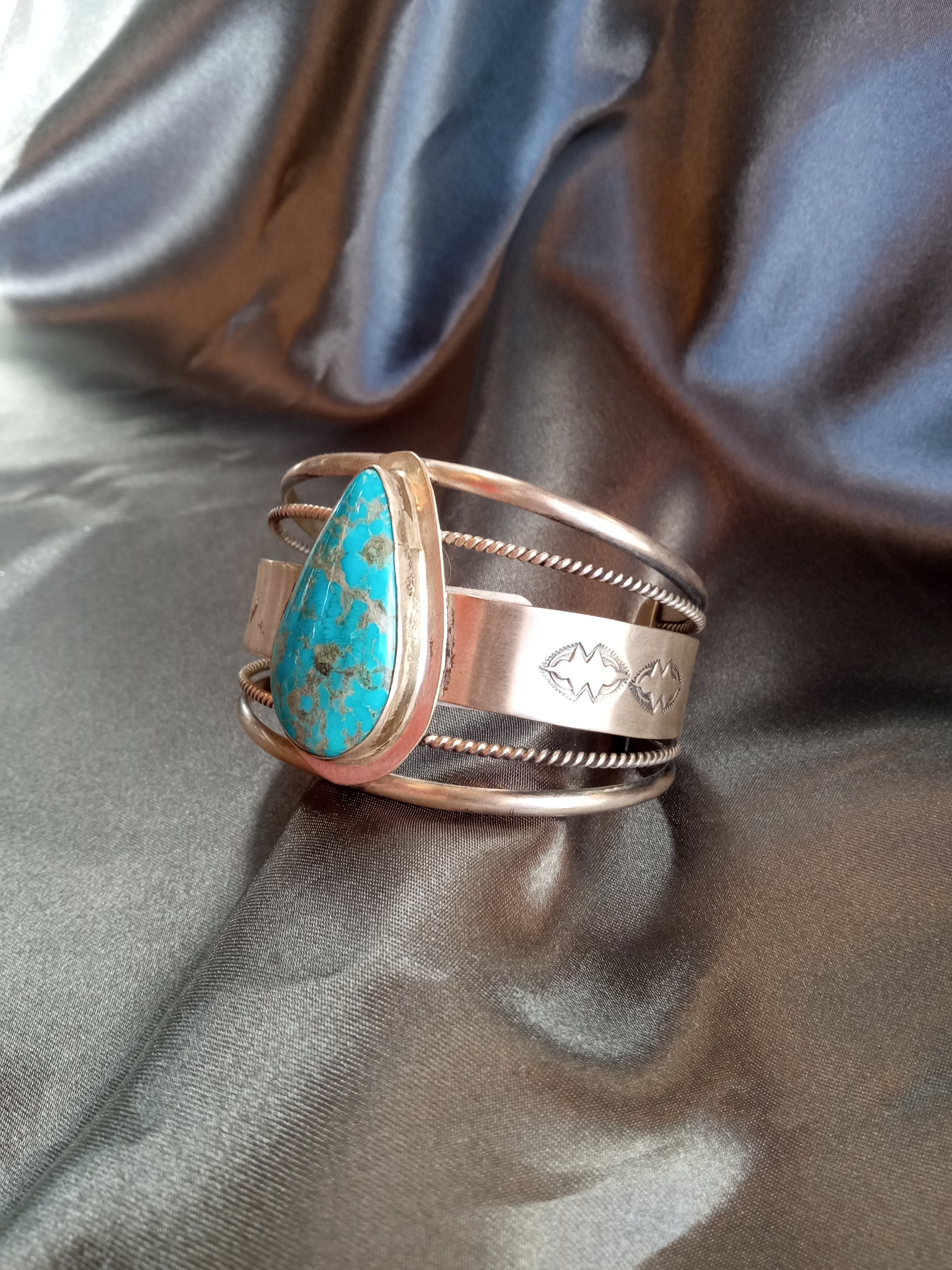 Genuine Native Turquoise and Sterling Silver Teardrop Cuff