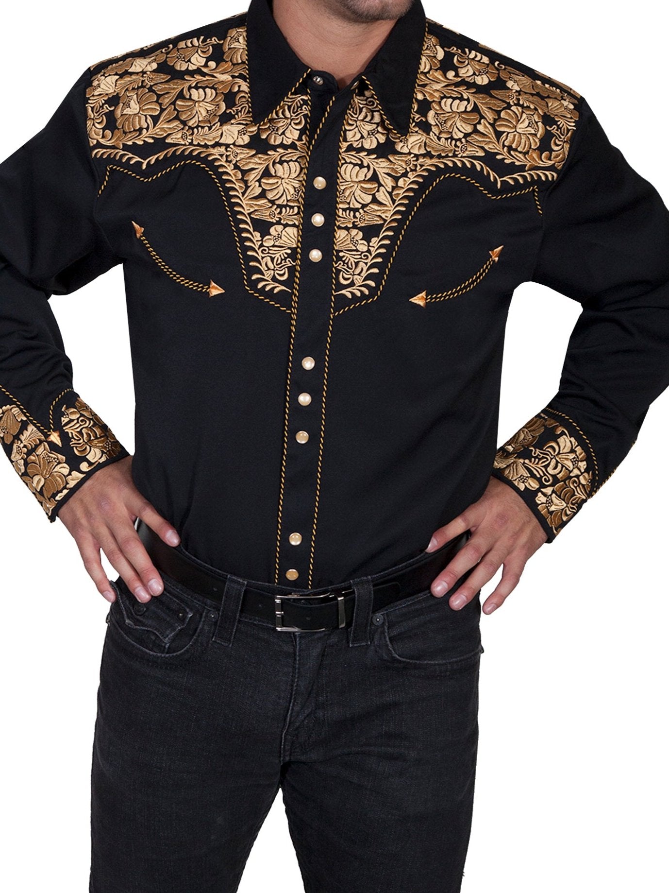 SCULLY FLORAL TOOLED EMBROIDERY SHIRT - Gold