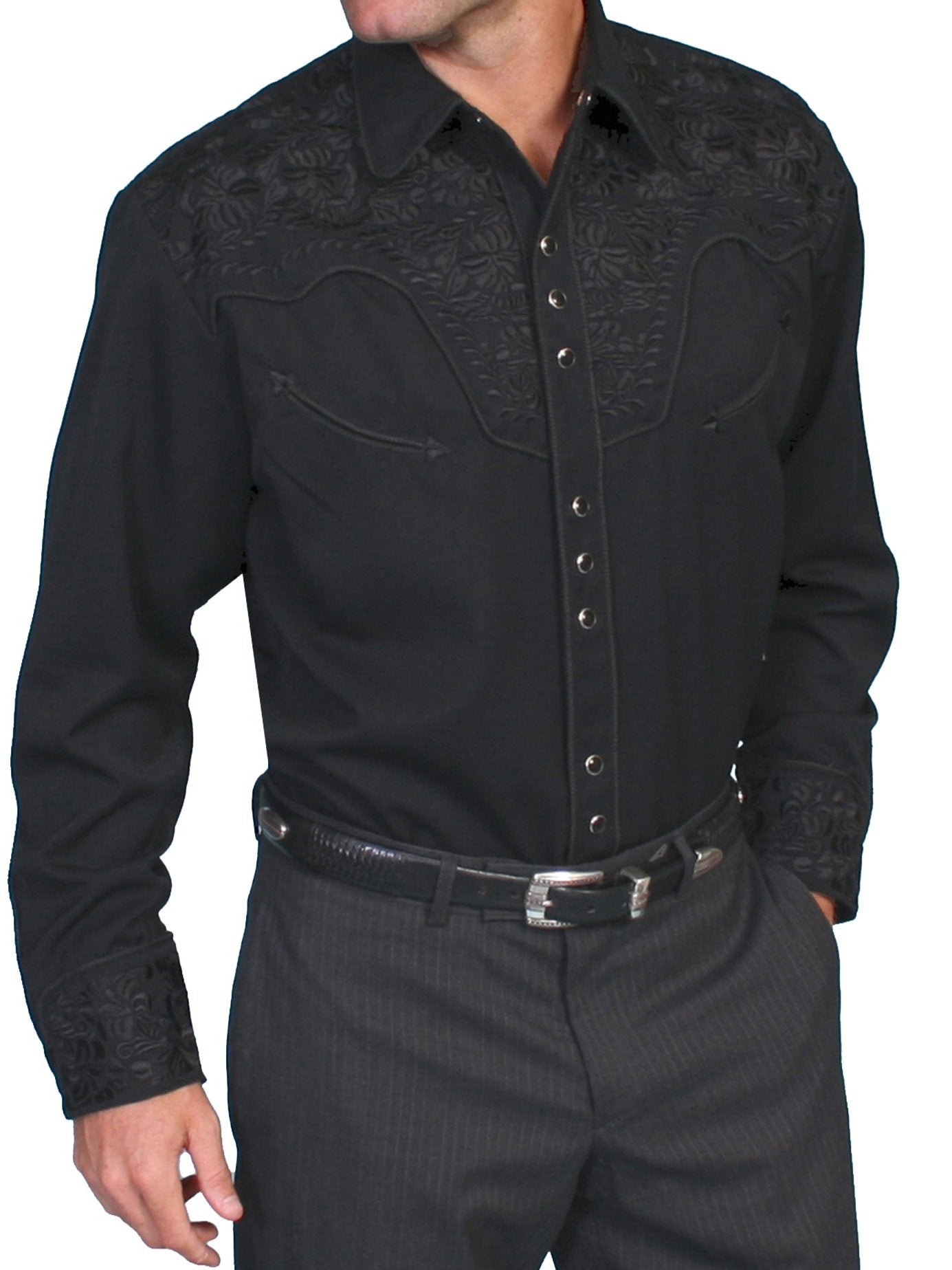 SCULLY FLORAL TOOLED EMBROIDERY SHIRT - Jet Black