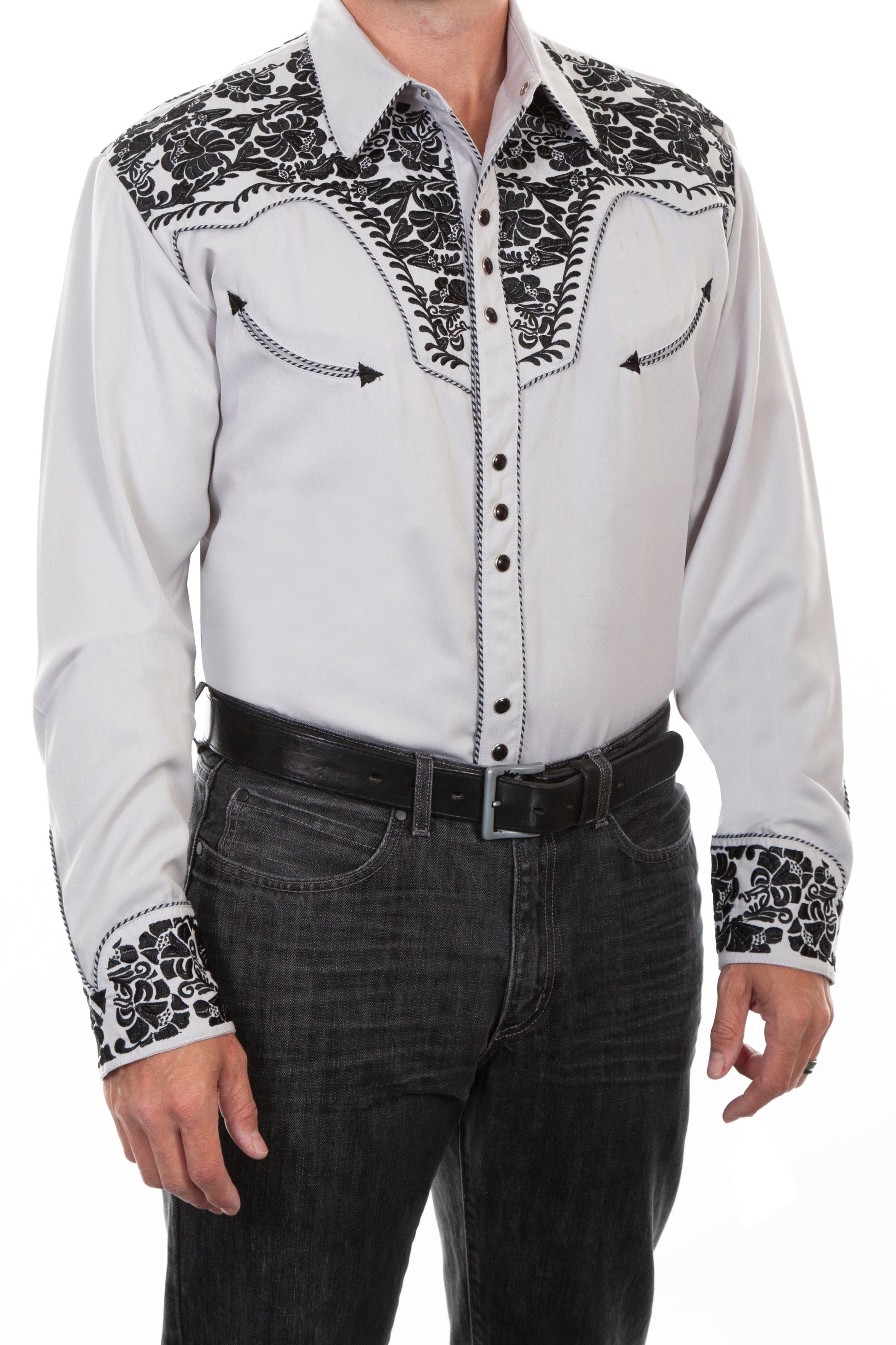 SCULLY FLORAL TOOLED EMBROIDERY SHIRT - Steel