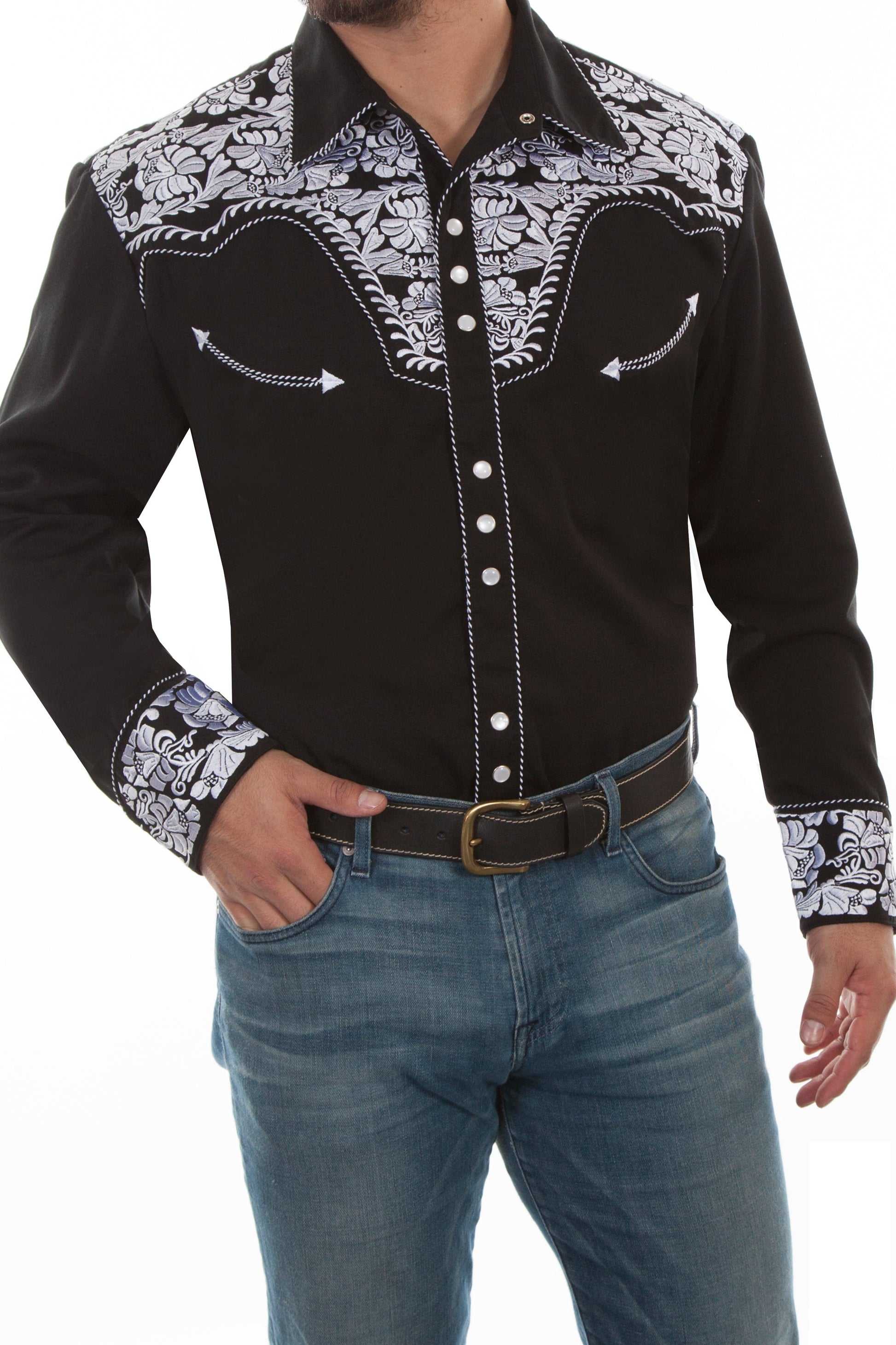 SCULLY FLORAL TOOLED EMBROIDERY SHIRT - White and Black