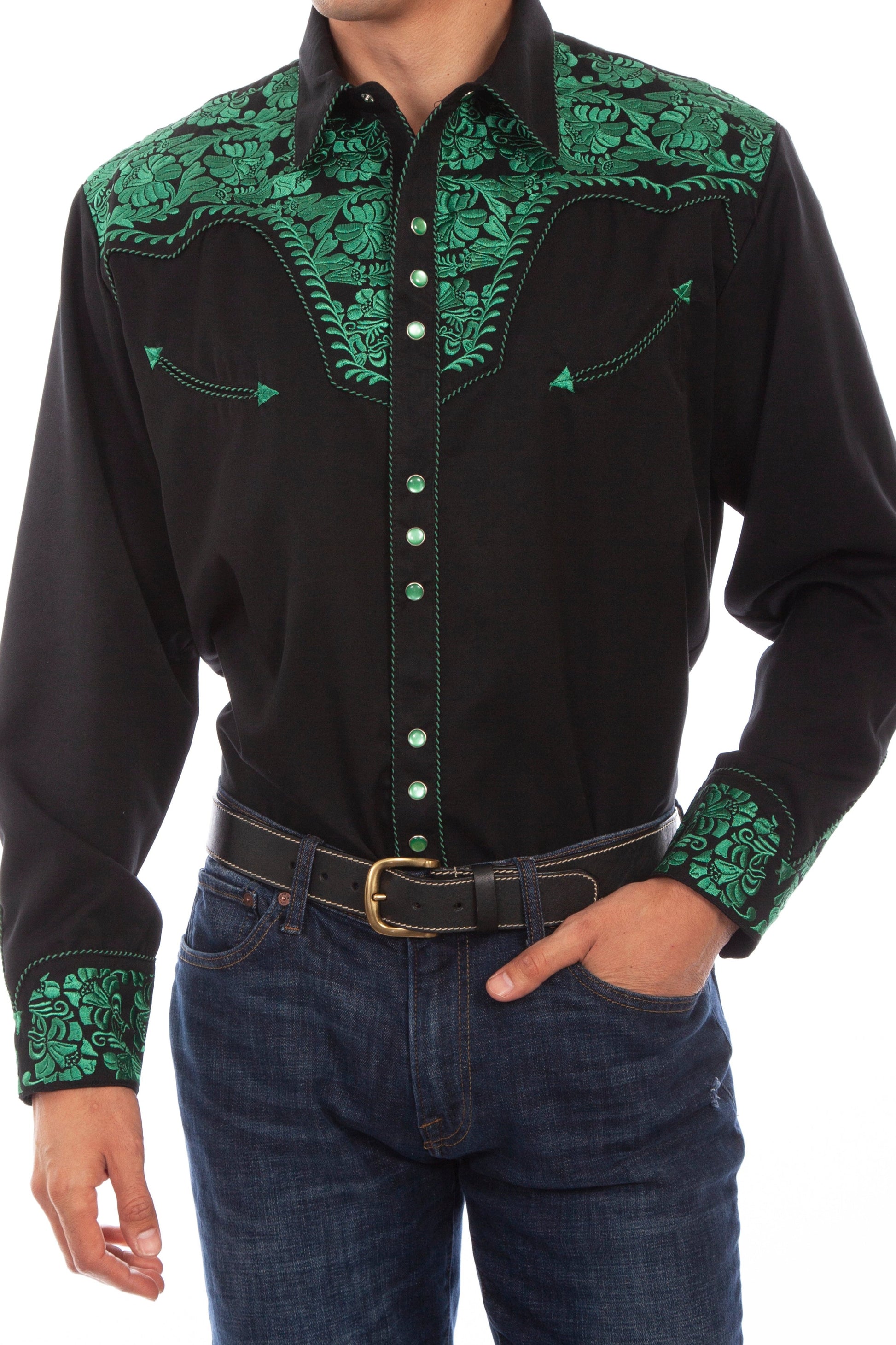 SCULLY FLORAL TOOLED EMBROIDERY SHIRT - Emerald