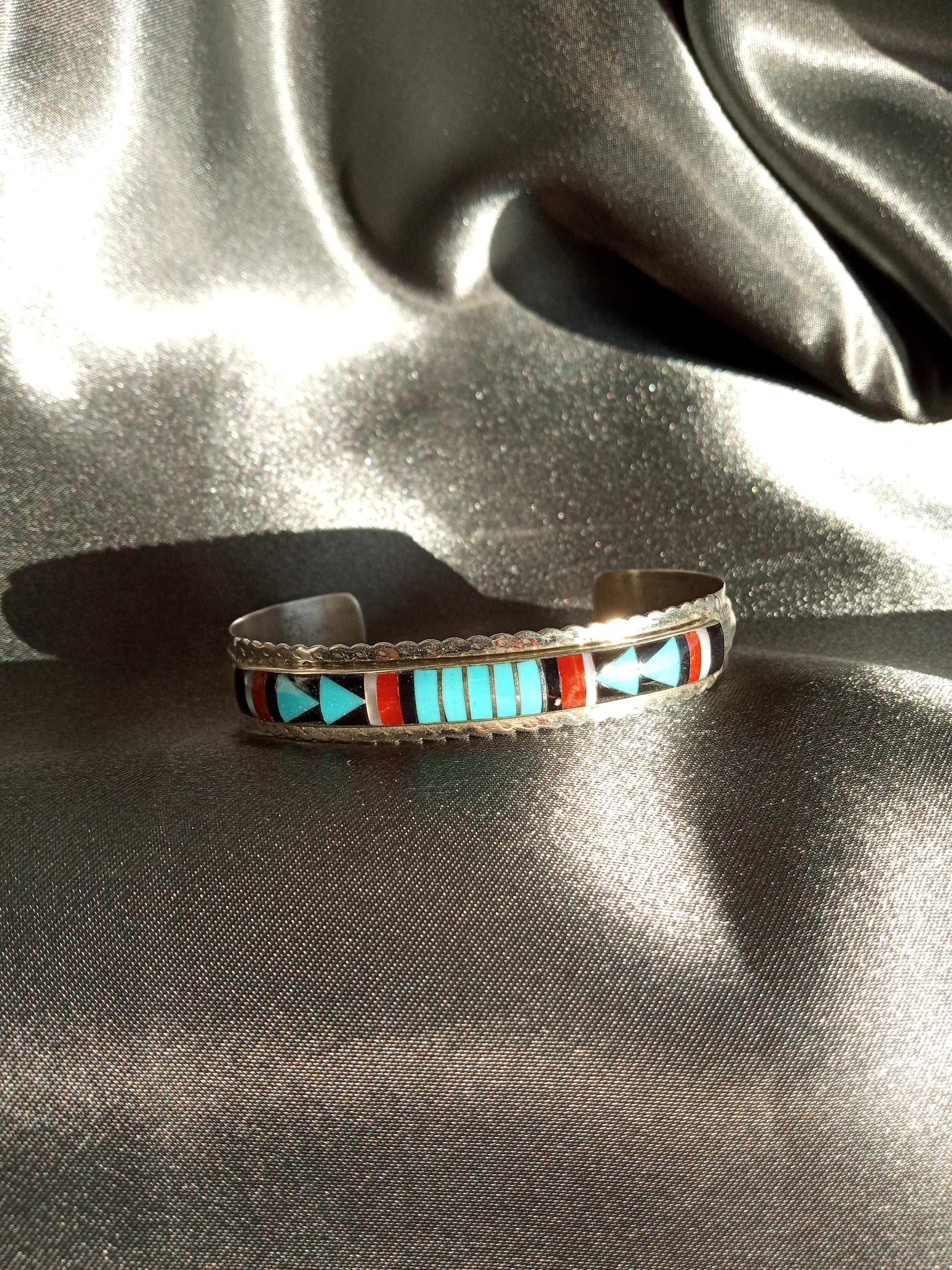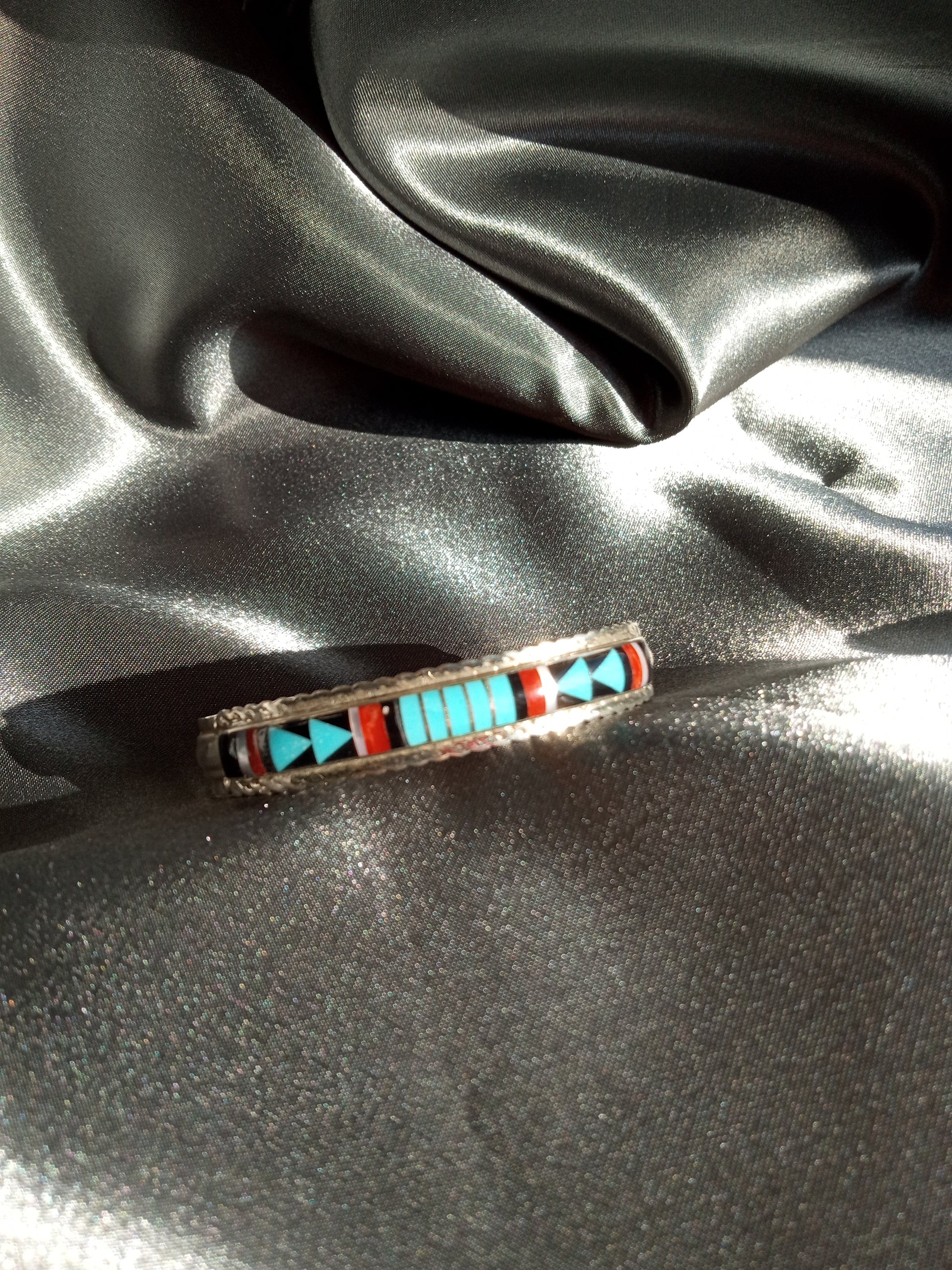 Solid Terling Silver band with Rainbow Yei Stones