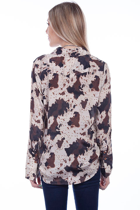 - Poly crepe blouse with western back yoke and cuff sleeve.