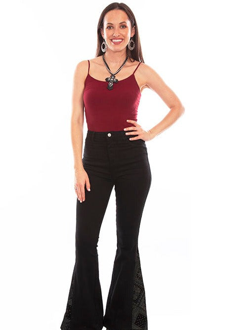 - You'll be sure to turn heads in these bell bottom with bandana print inset pants.