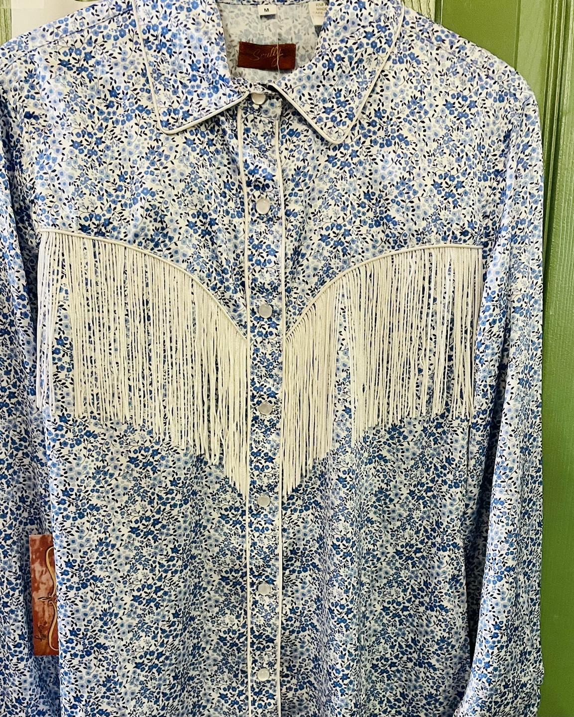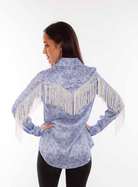 Scully Prairie Blue Flower Print Satin Shirt