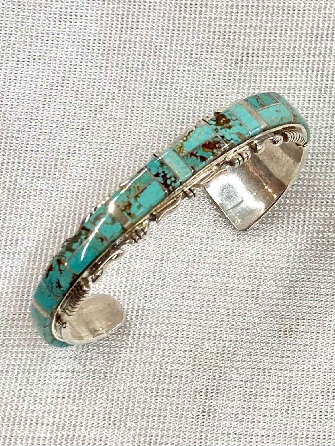 Handcrafted cuff (See card for details about the turquoise) Hand Crafted in New Mexico by professional artists. All natural turquoise and real silver.