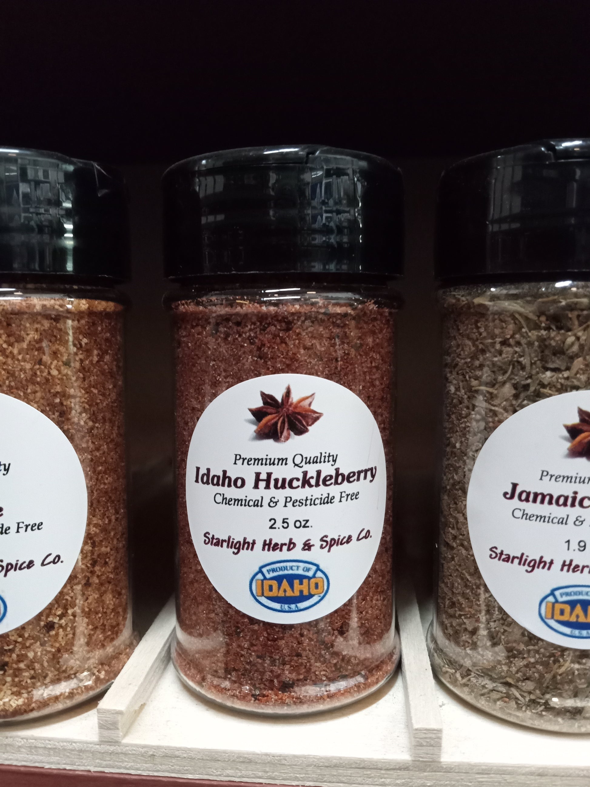 A wonderful blend for smoking, oven roasting or bar-b-cuing chicken, pork, fish and for a delectable spin on Prime Rib or Tri-tips. Made from freeze dried Idaho Huckleberries, sugar, paprika, salt, pepper garlic, spices and a hint of cayenne.