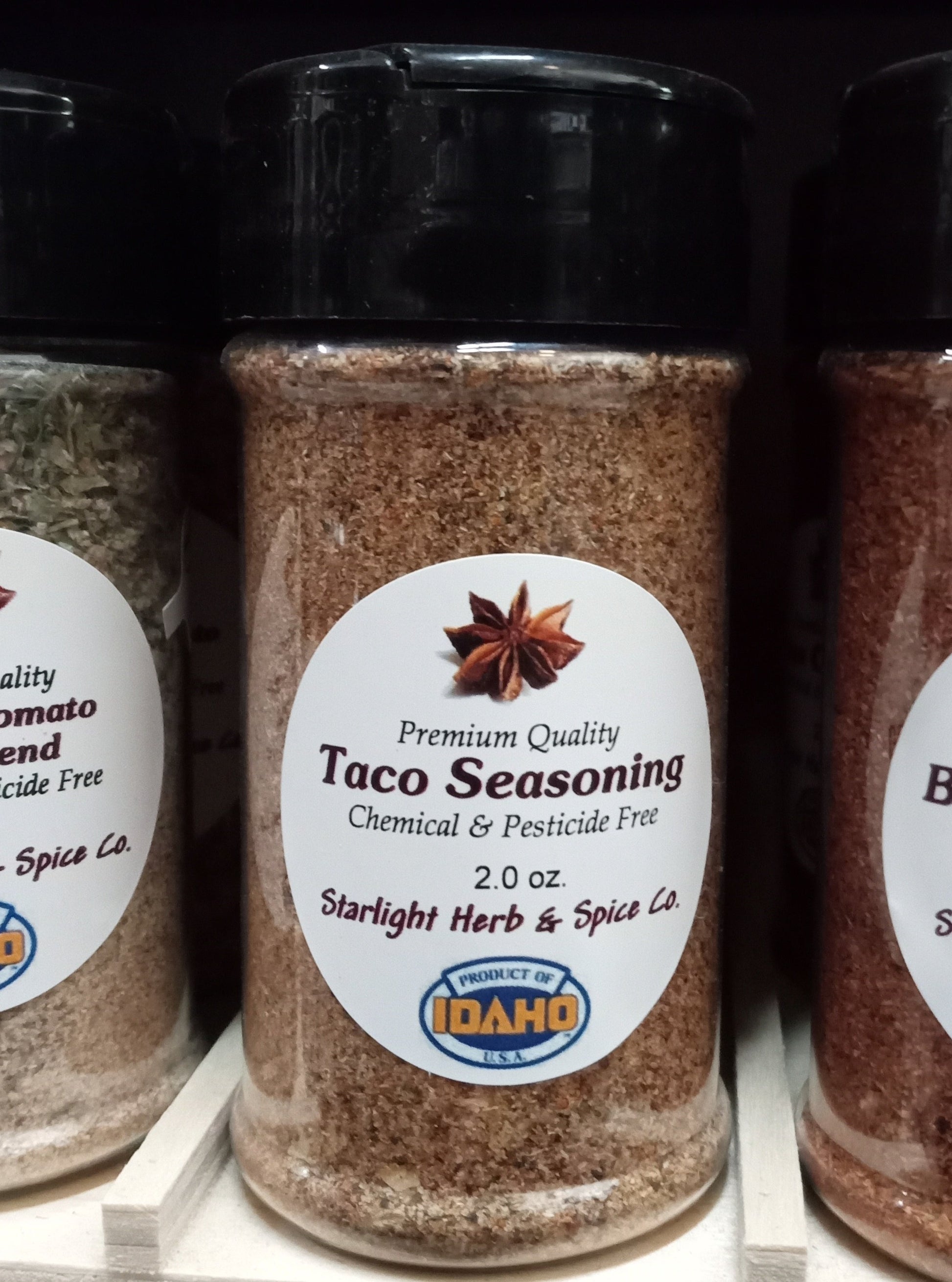 Add 1 tsp. to 8 oz. of tomato sauce for a quick taco sauce. Spices, chili peppers, salt, garlic, dextrose, onion.