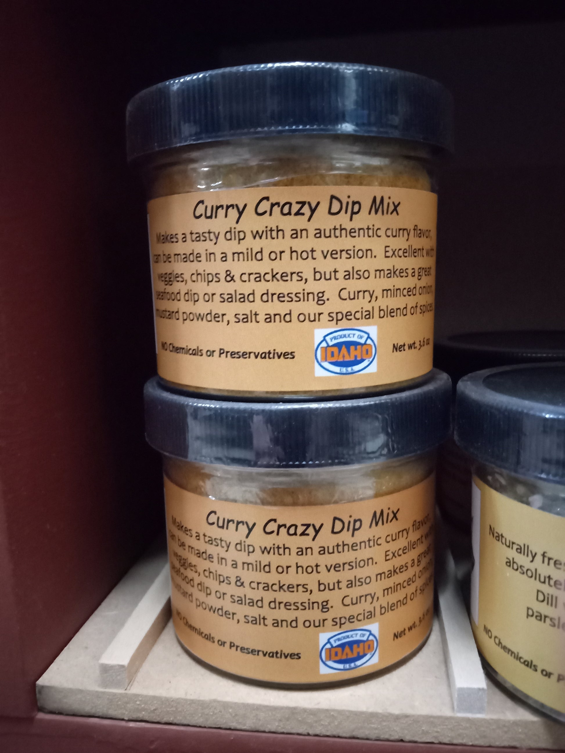 Makes a tasty dip with an authentic curry flavor, can be made in a mild or hot version. Excellent with veggies, chips & crackers, but also makes a great seafood dip or salad dressing. Curry, minced onion, mustard powder, salt and our special blend of spices. Instructions on label.