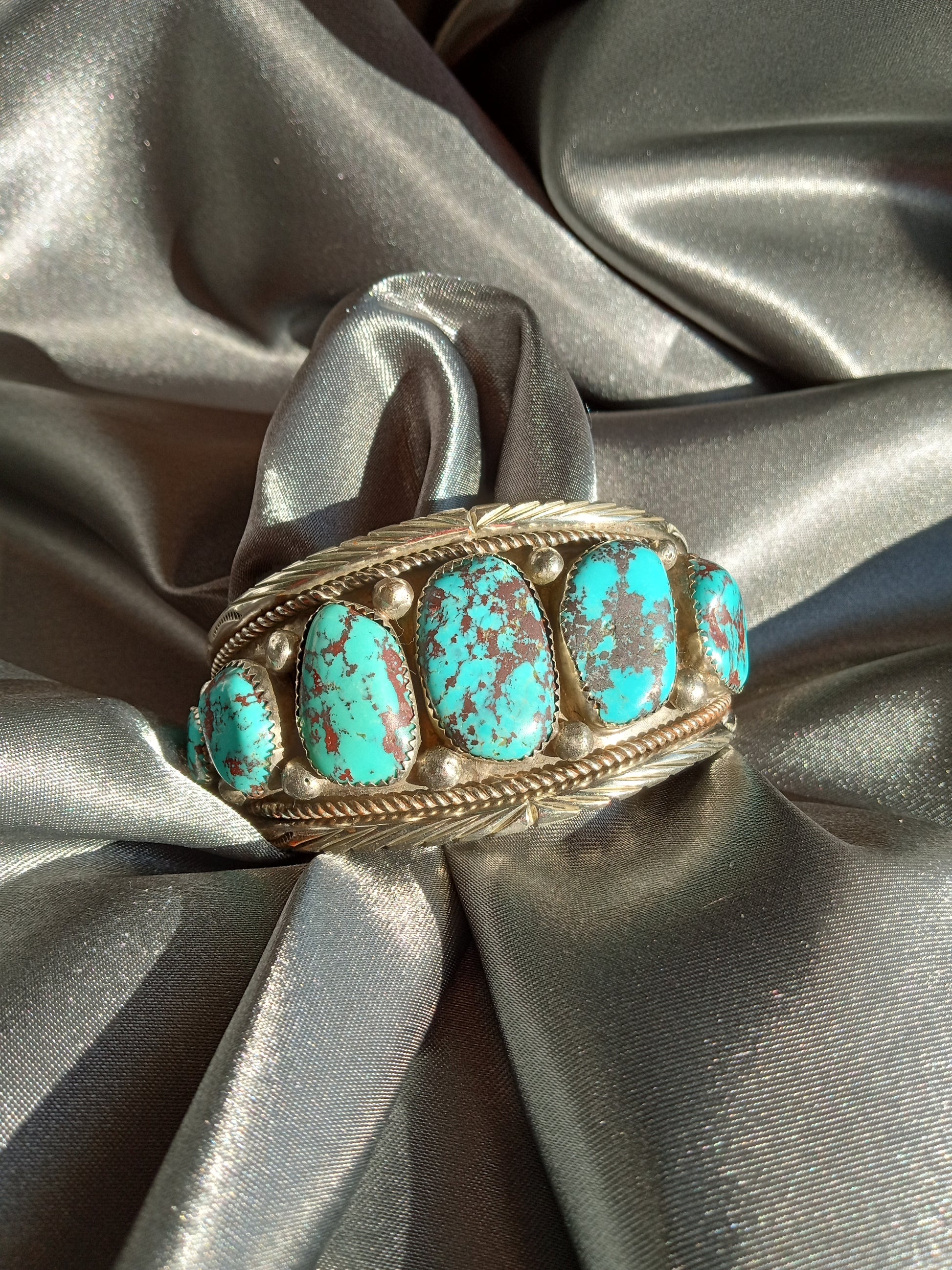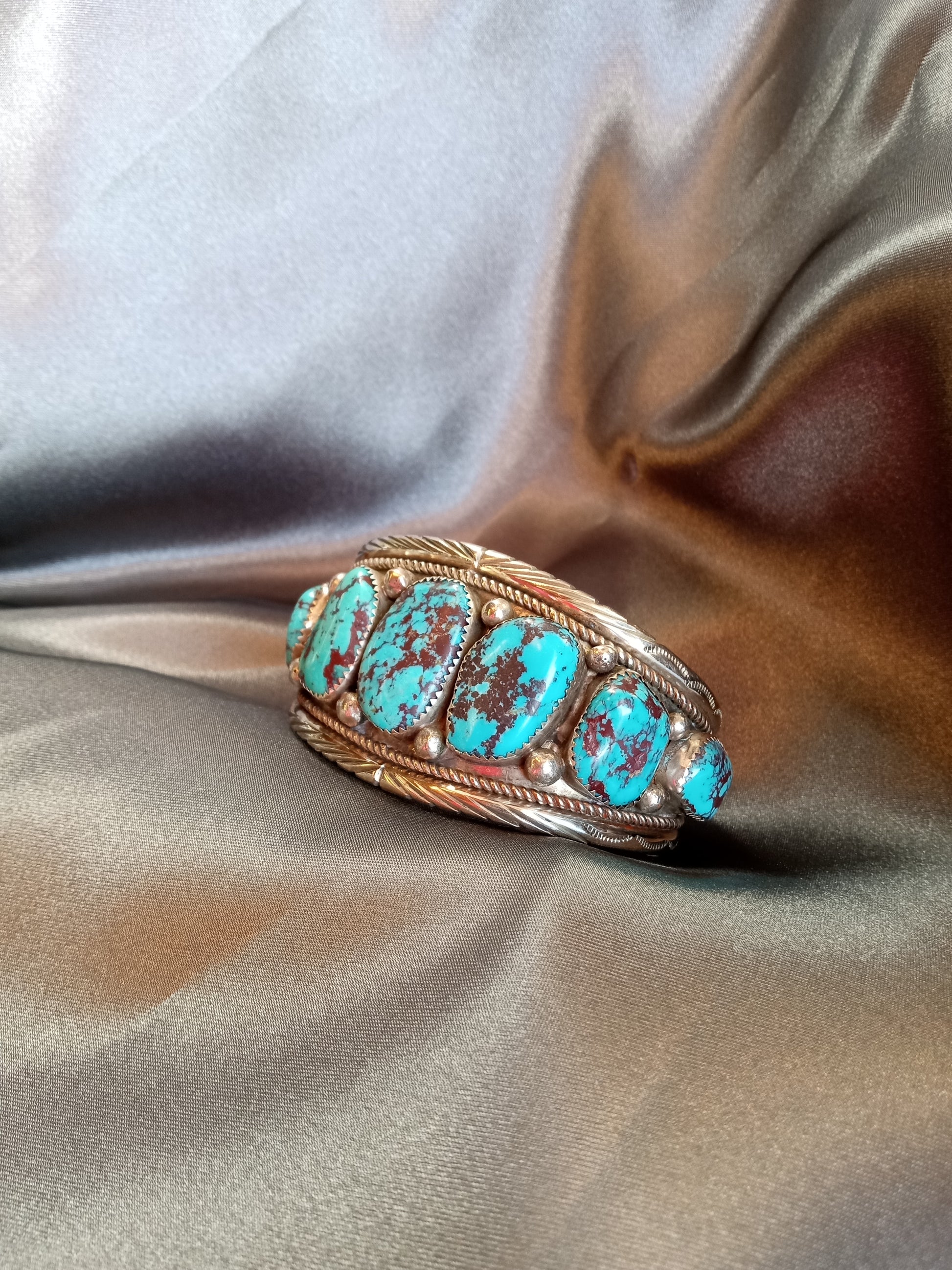 Hand Crafted in New Mexico by professional artists. All natural turquoise and real silver.